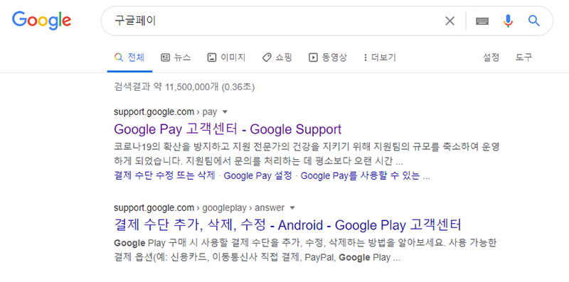▼구글에서 [구글페이검색] /구글페이 고객센터 클릭